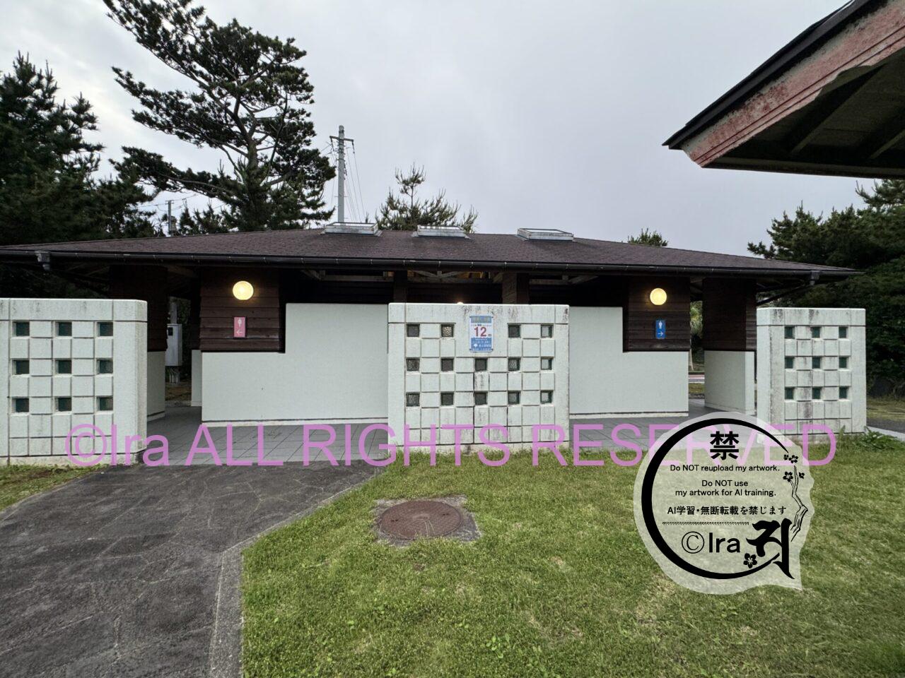 シャワーと自炊場と公衆トイレ。展望台があります。草丈は短く丁寧に管理されていました。自治体努力を感じます。