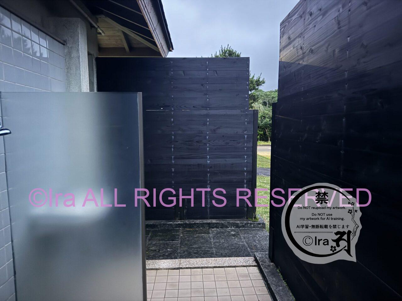 女性用シャワーが道路側、男性用シャワーが海側です。女性用シャワーには目隠しがなく道路から丸見えでした。つまり裸などでは利用がしにくいし、やろうと思えば盗撮もされます。