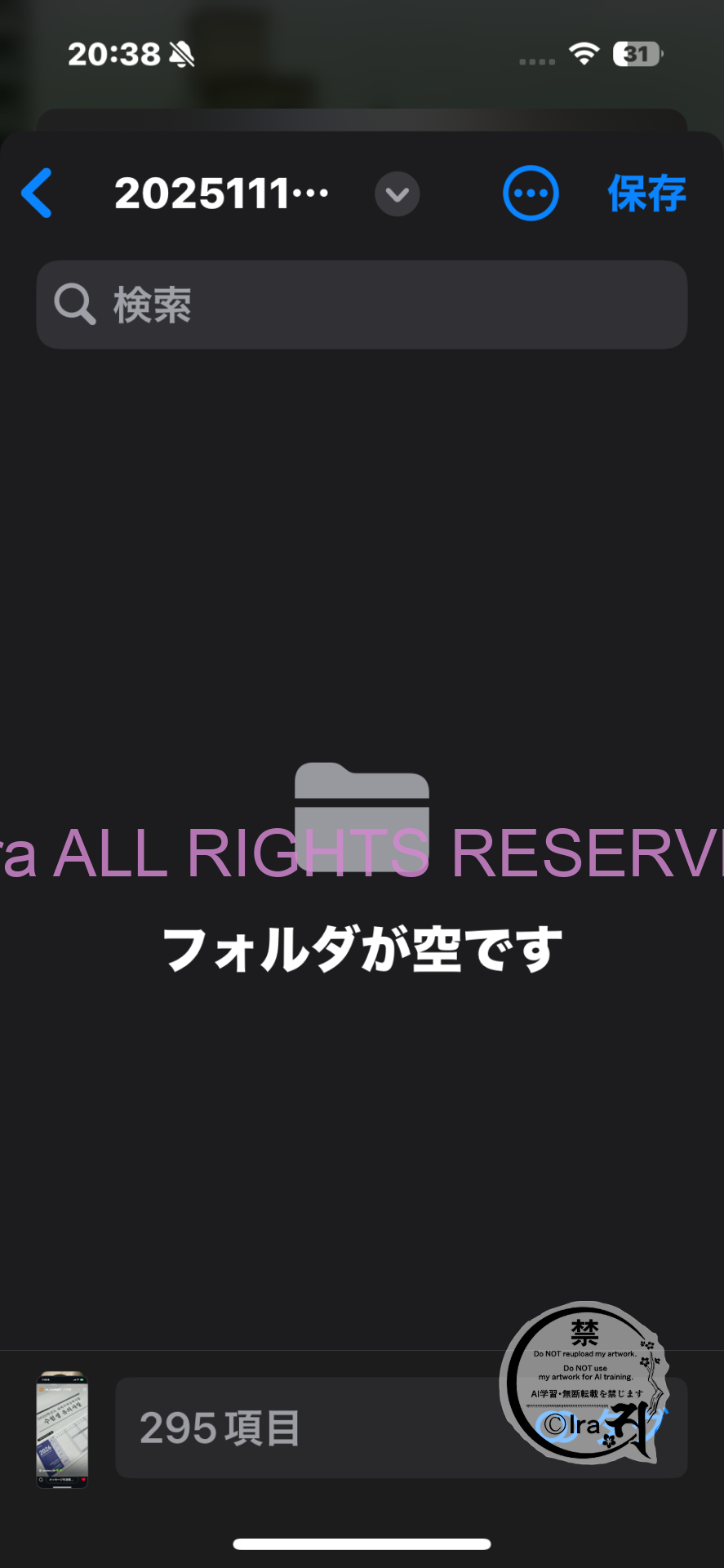 「全てを選択」しSSDへ移動(実際はコピーだけ)を実行すると2枚目の画像のように295項目と表示されています。
