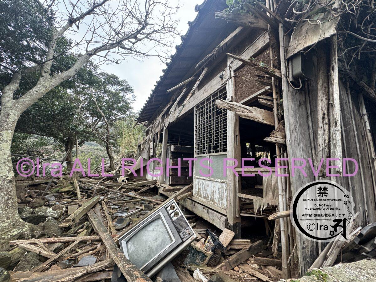 レトロなTVがこのように残されたままの元集落。自然倒壊を待っている状態の廃屋が... -
