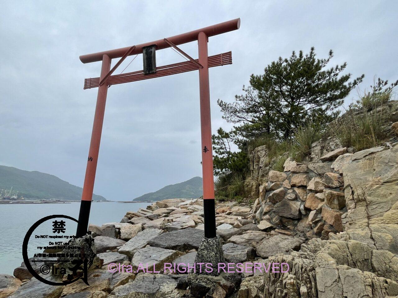 干潮時しか徒歩でいけない。広島の船霊社:神社:シンガポール人と島めぐり。
