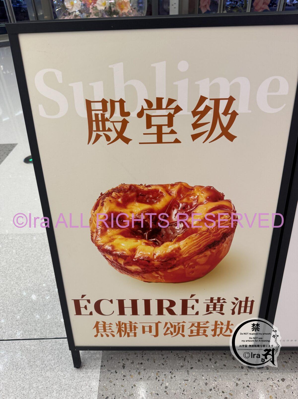 中国旅行先で偶然見つけたカフェ。平日だったがエッグタルト購入者のプチ行列ができてた。