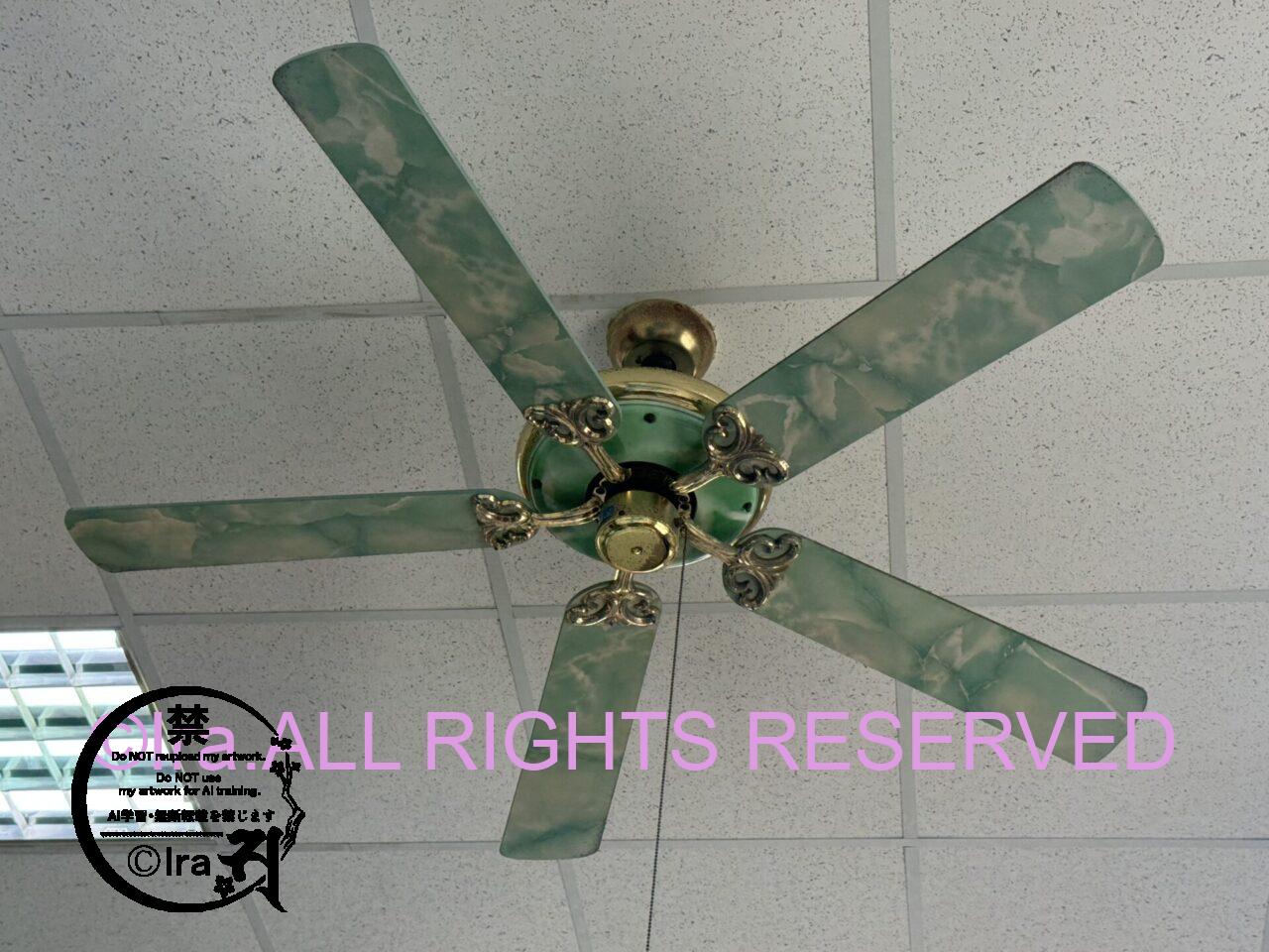 そうなんだ。まあそのようなご謙遜はさておき、このファンが3つほど天井についていました。レトロだな。