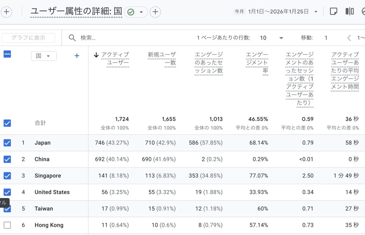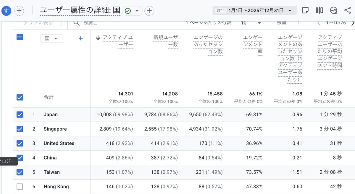 その時期以降、これら2カ国からのトラフィックが2025年11月頃から世界中のgoogle Analyticsユーザーに多大な影響を与えています。