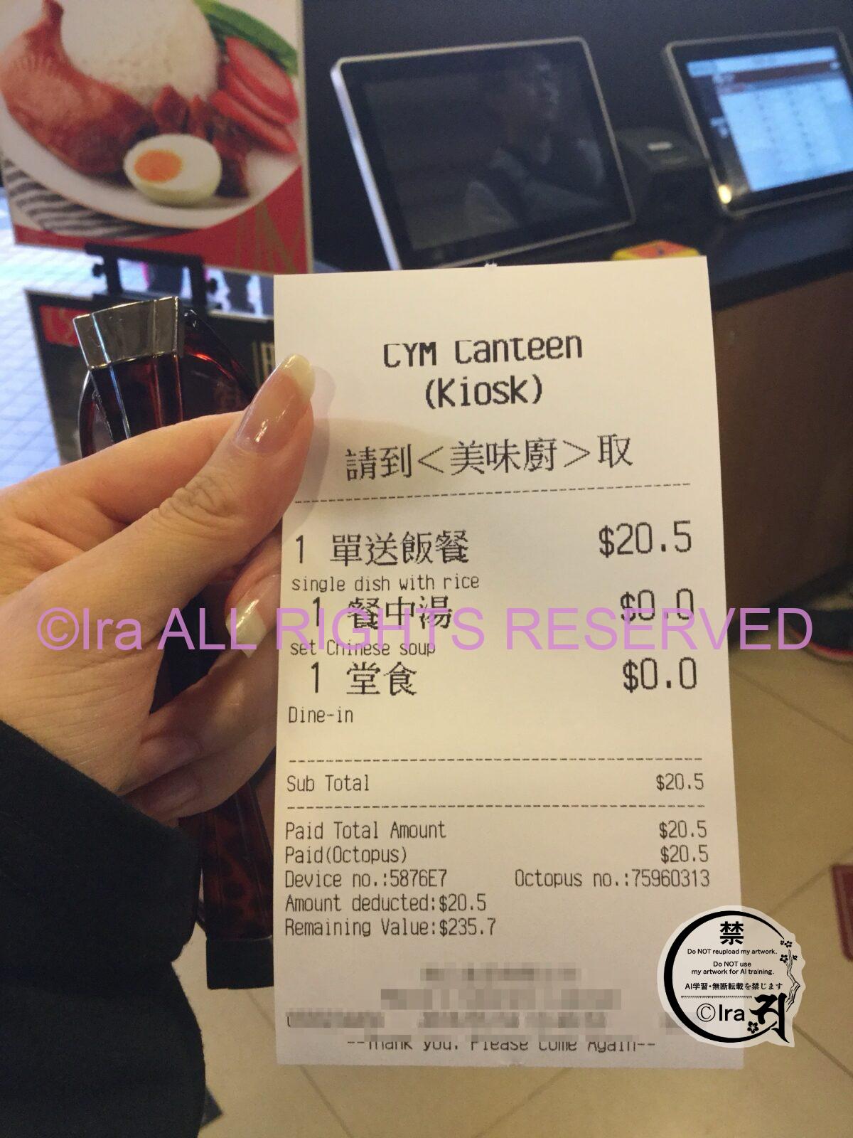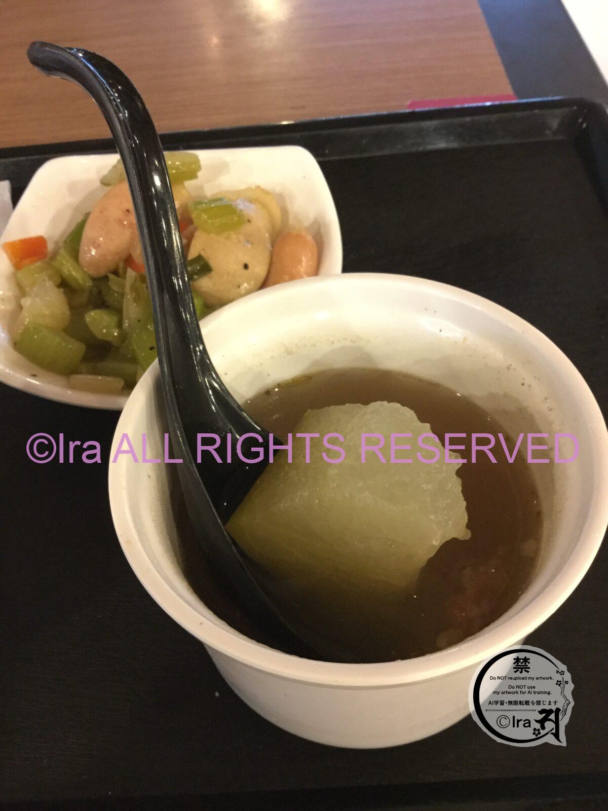 スープには大きい大根1片が具として入ってました。この日の日替わり定食は20.5香港ドル。