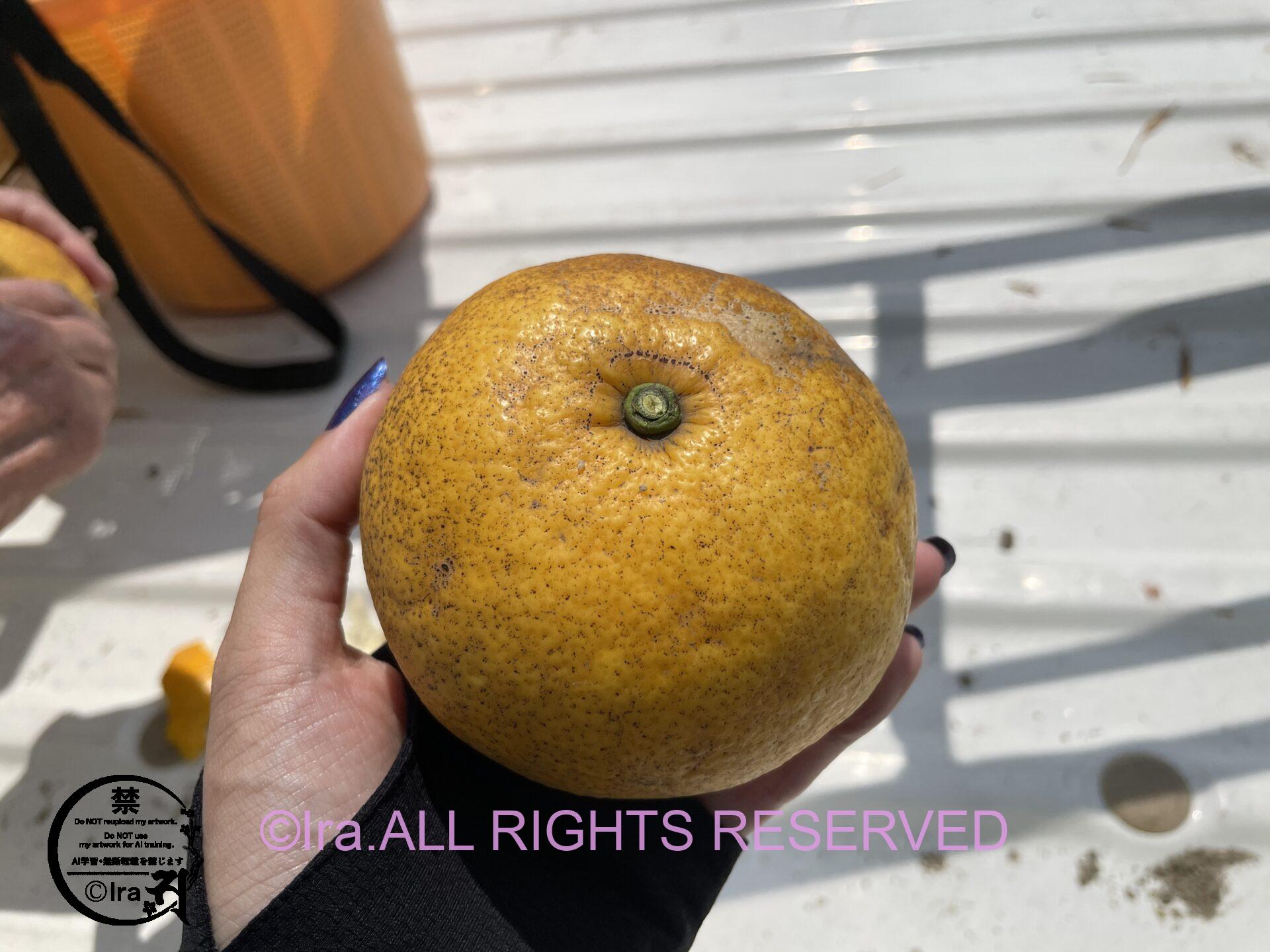 柑橘類の農家を細島でなされている男性からお裾分けあり。出会うたびにお裾分けしている気さくな性格らしい。一緒に船にいた他の島民2人の方が島についてたくさん語ってくれた。