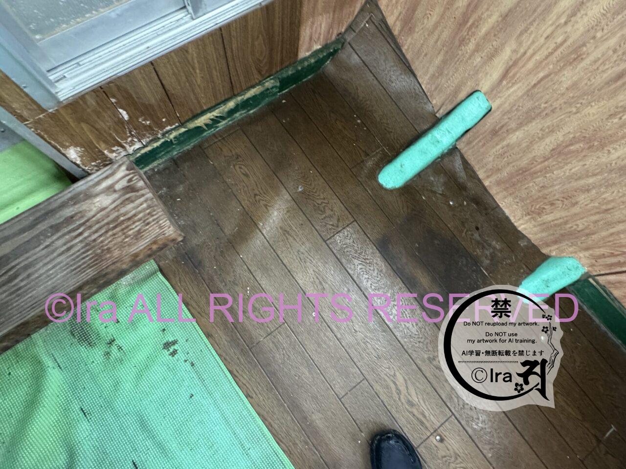 床がめくれあがっていた