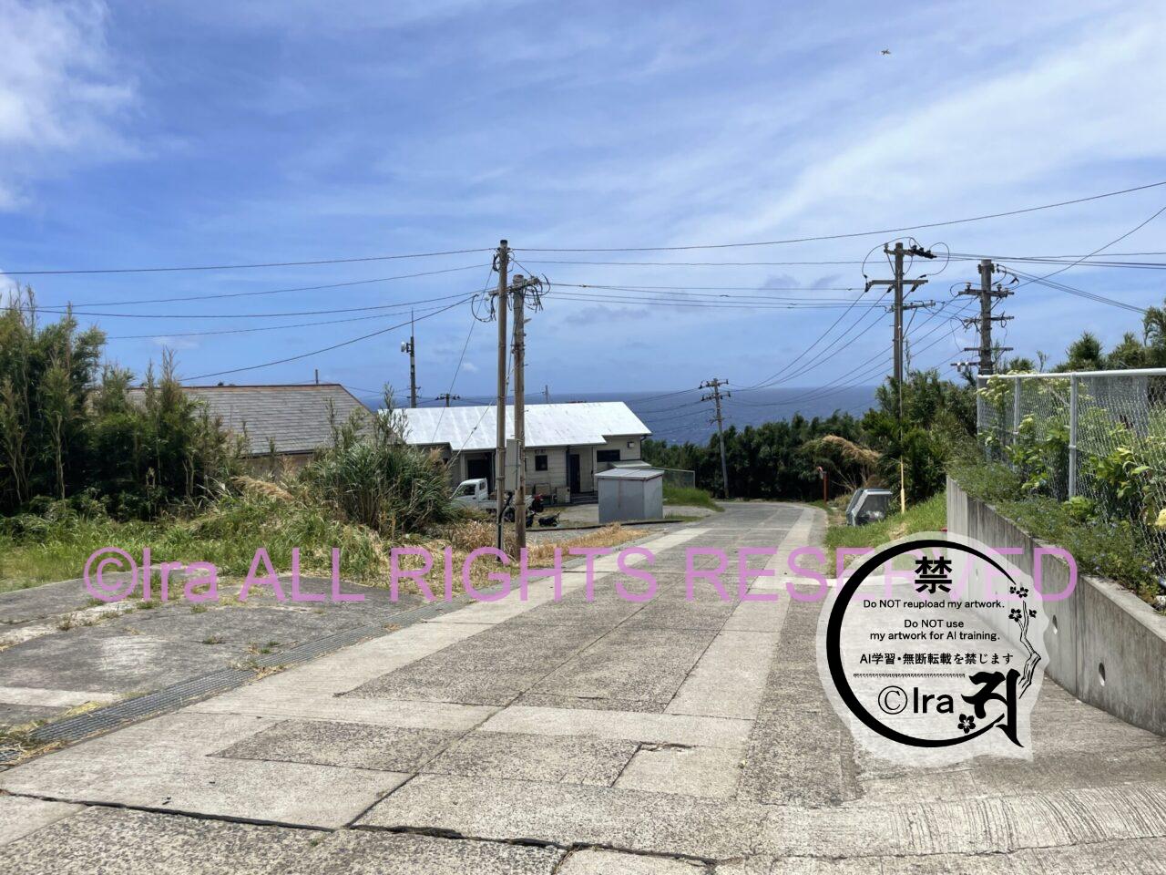 港から集落までの道は急な坂道が徒歩30分ほど続くが、島の最高標高は高くはない。