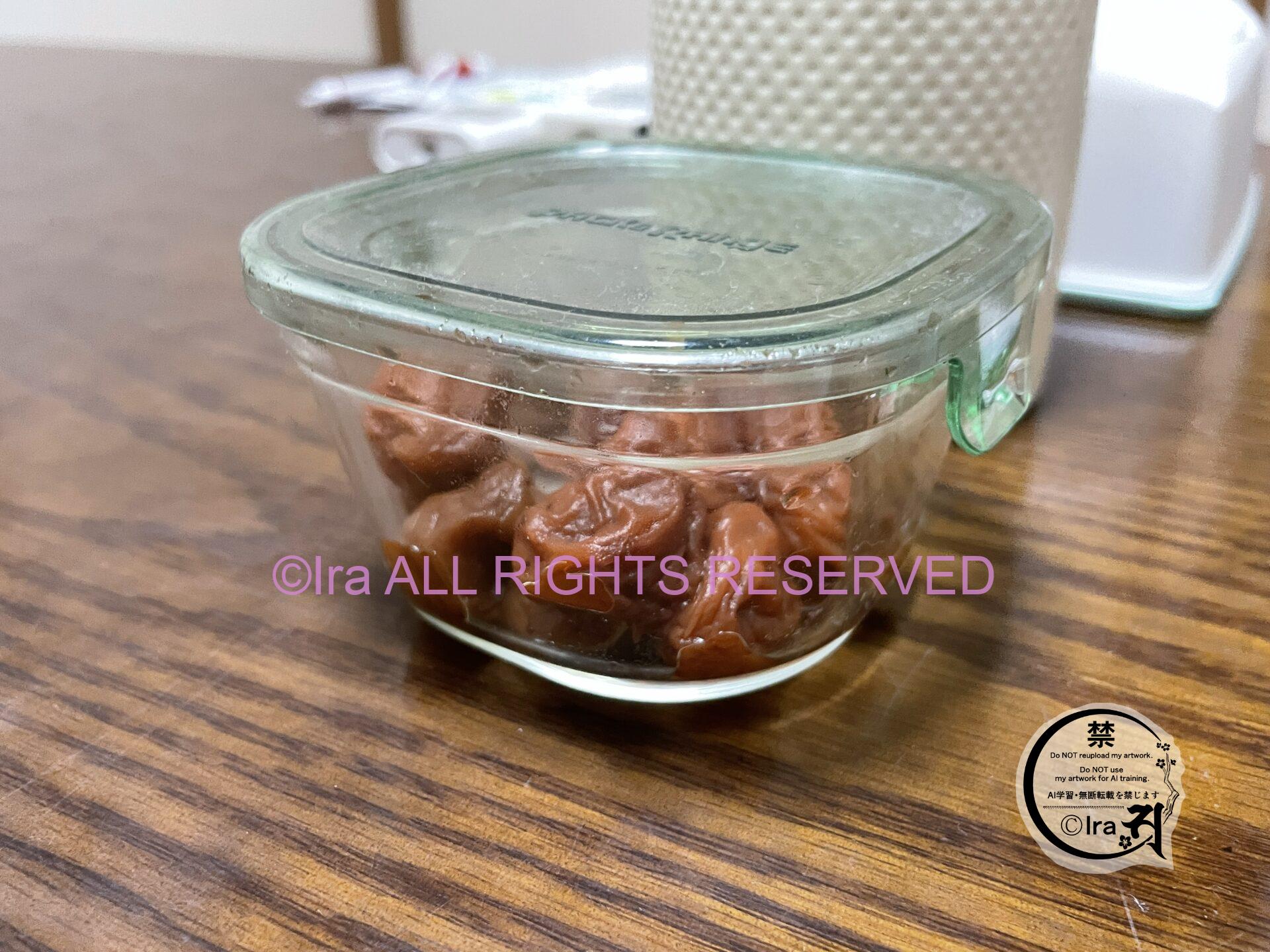 自家製の梅干しとお菓子が常に部屋に置いてあった。それとお茶とポット。