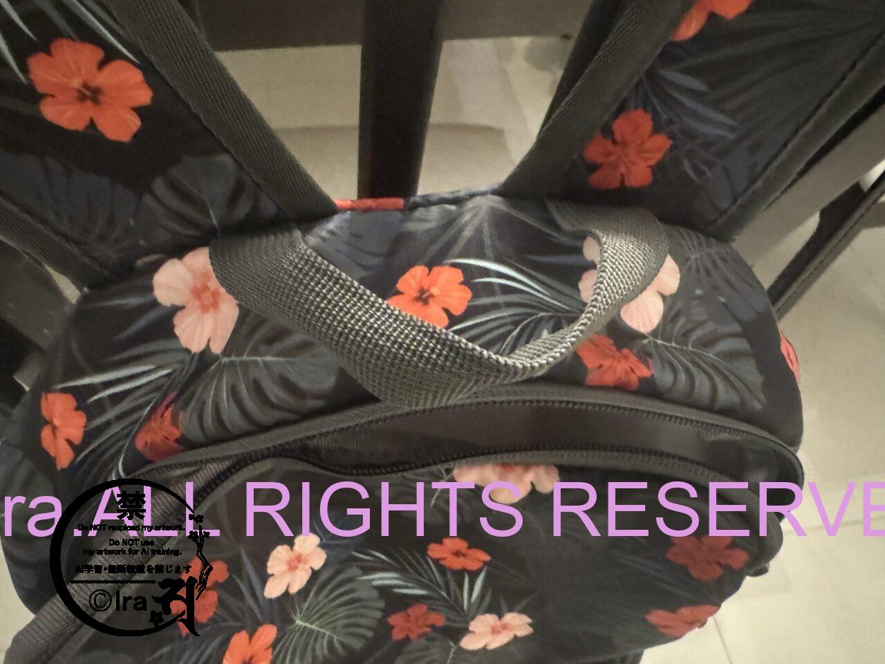 この花柄バックパックは、韓国へ一人旅の時に使用。目立つようにあえて花柄を購入しました。日焼け防止で服は黒色の長袖パーカーでトップスは白色のカットソーなど普段マニッシュ系が僕は多いです。なので花柄でもコーデが見苦しくはならない。