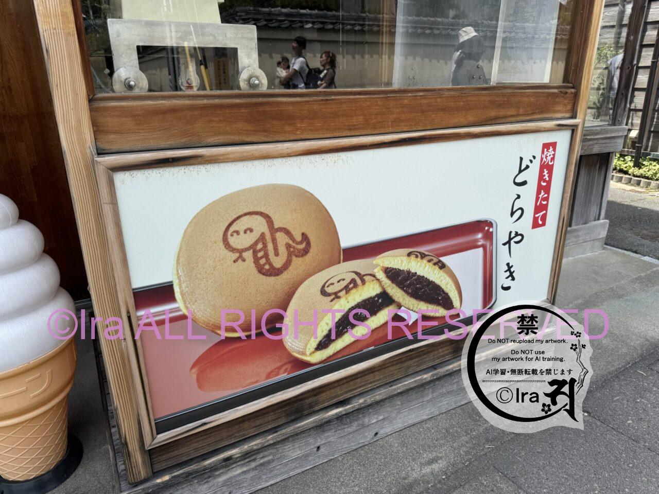 「焼きたてどら焼き」は午前中に焼いているので昼すぎにはもう冷めています、と包み隠さず正直に教えてくれる女性店主。