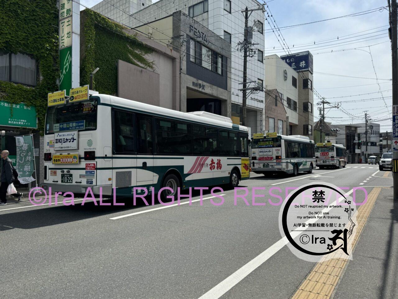 同じ路線バスが3台も続いている光景。こちらの路線バスは内宮から数分歩いたバス停を使うためかガラ空きでした。地元民が使うバス。料金も安い。