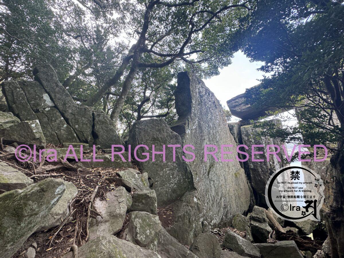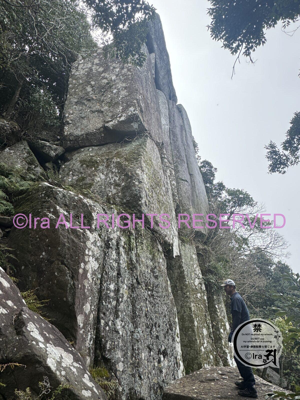 人為的ではなく、自然にこのような切り立った岩となった、とされています。写真に写っているのはIraではなく、この小値賀島観光のガイドさんです。