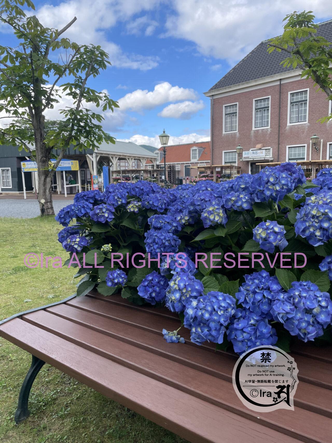 ベンチの背もたれを覆う紫陽花。こういう場所が人気だった。よくこれを思いついたなと関心した。