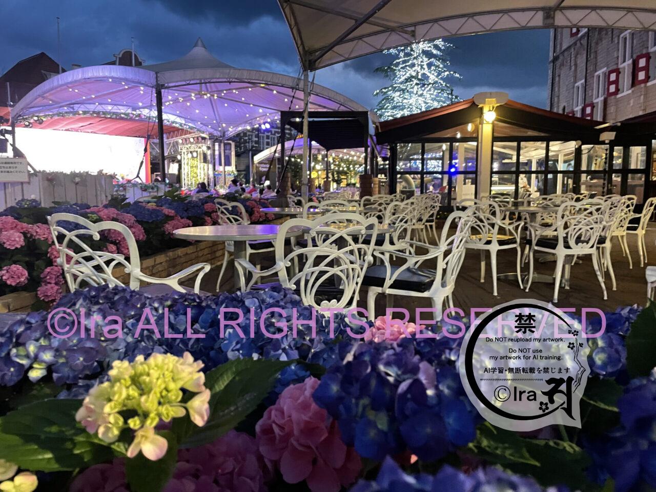 青色の紫陽花が最も多かったです。白色と赤色もあるので、一つの色に突出はしていない。他の植物も多く配植されており、どこも居心地がいい。大雨だとさすがに屋外で長くいるのは厳しいかな。この日はたまたま晴れたんです。