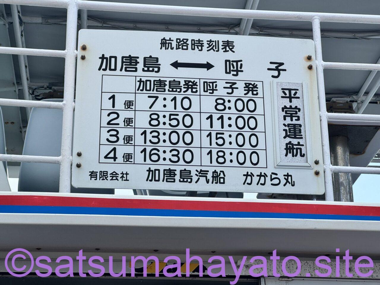 ・加唐島は現在「カカラ」と呼ばれているが、720年の『日本書紀』雄略天皇5年4月条には「各羅嶋」と記され「カクラ」と発音されていたことになる。1605年の公益財団法人鍋島報效会所蔵『慶長肥前国絵図』では「賀々良島」と表記され、19世紀に製作された伊能図では「加唐島」の表記がなされていた。近世には「カカラ」の音に変わっていたことがわかる。「カクラ」を「カカラ」と発音することについて、1841年に伊藤常足が著した『太宰管内志』には各羅島の項で、各羅は「加か加か良ら」とよむべしとする。各羅は「カクハラ」と発音していたと解釈され、「クハ」が「カ」に転じて「カカラ」となり、漢字も各羅から加唐に変化したということのようであるらしい。