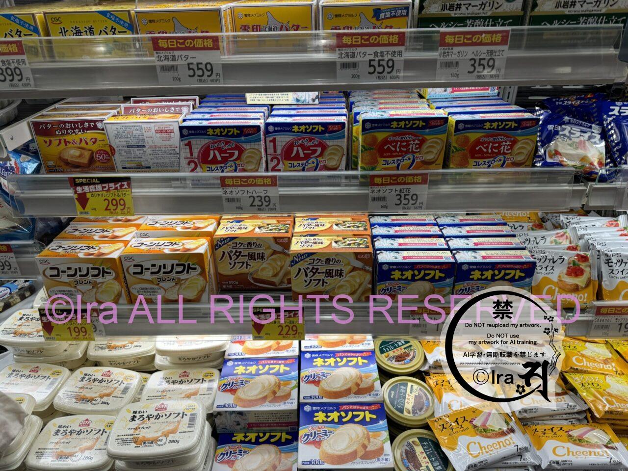 マーガリンがこんなに販売されているのって日本だと珍しい光景に思えた。体によろしくないとはいえ、メグミルクのネオソフトとかこの手のパッケージデザインは個人定に好きなんですよね。
