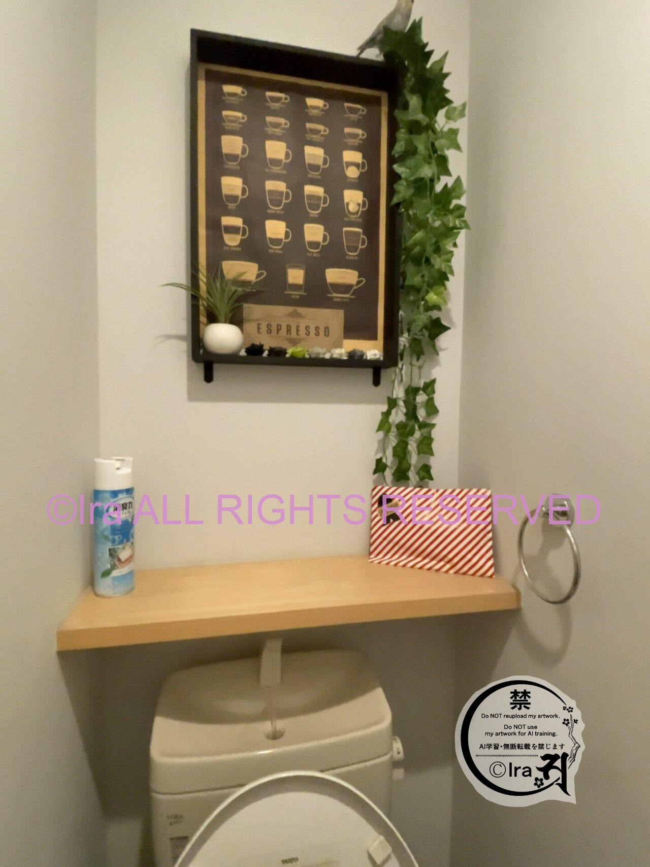 トイレの奥に置いてある、赤色の包装紙のインテリアは謎に包まれていた。
