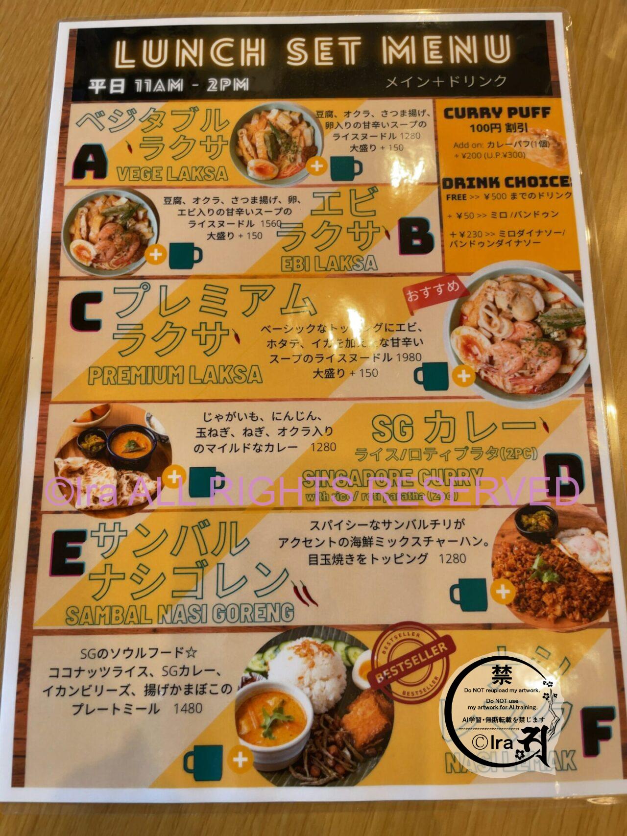 ココナッツミルク多めのカレー。シンガポール現地で食べる味とは異なった印象。日本人向けに多少アレンジされていたのかも。