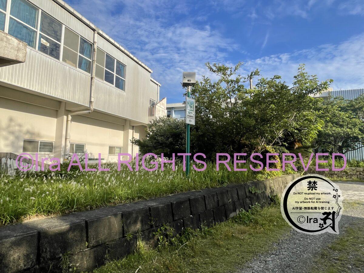 東京の有人離島、新島の小学校の体育館横ですら草すごかったもんな(下記写真)。これを用務員さん1人で草刈りしていらした。