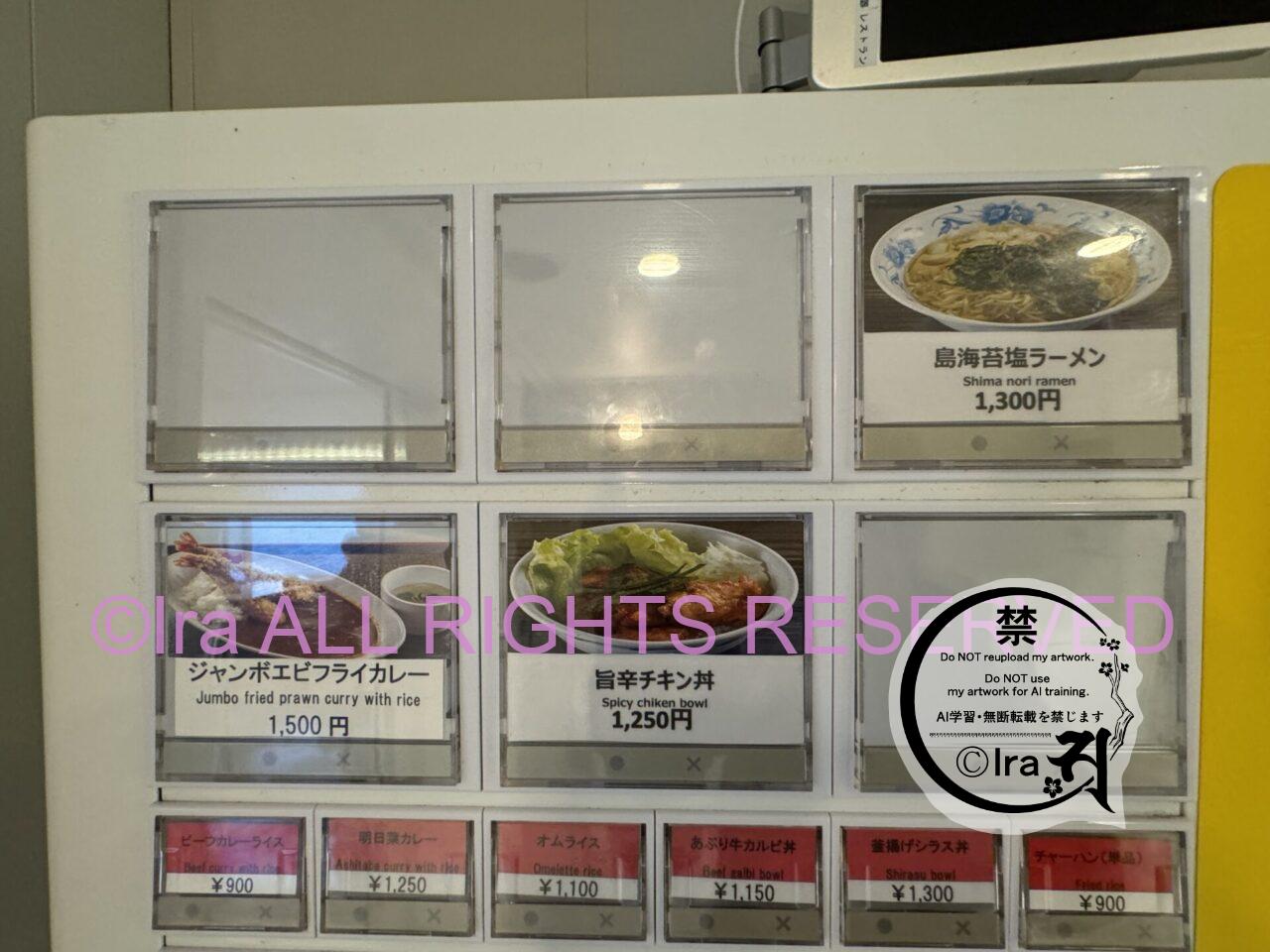 free wifiは2種類あり、一つはこのレストラン近辺と案内所でしか使用できない。もう一つのwifiはほとんど全く使えない。東京本土にいても。