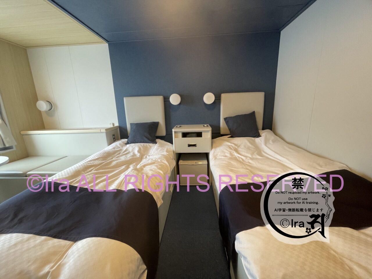 Iraの場合はこのメンテナンス航路時に、予約なしで特等室を利用しました。普段は事前予約しないと利用が難しい人気の部屋です。満室傾向。