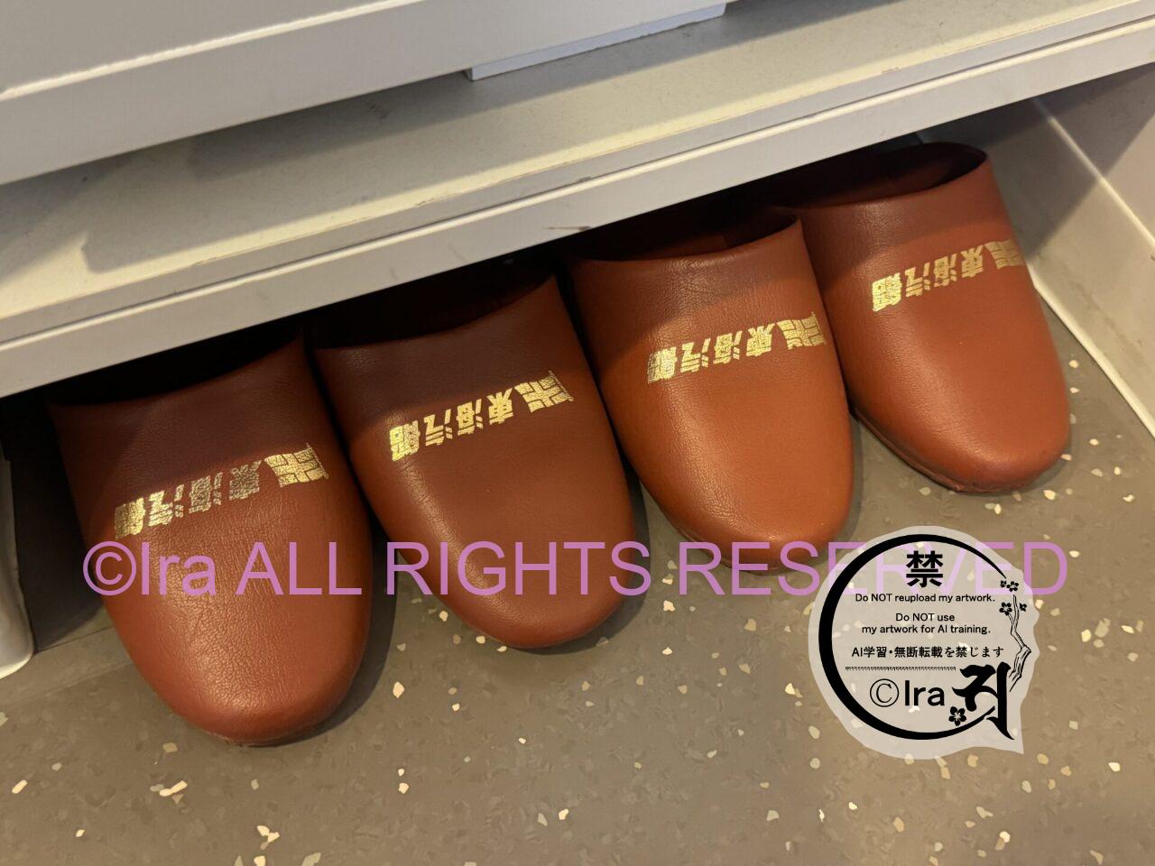 このスリッパと使い捨て型のスリッパがそれぞれ用意されている。