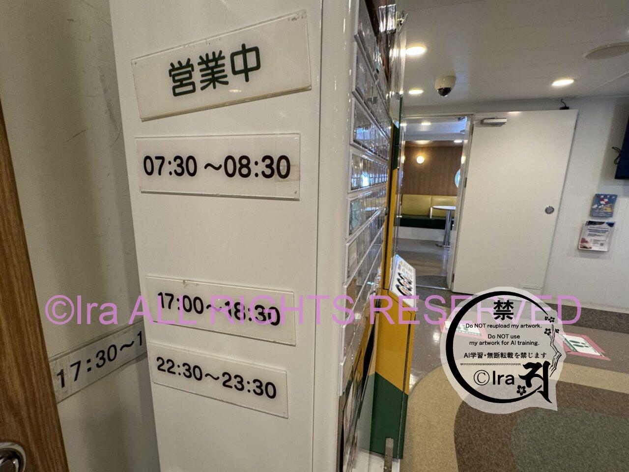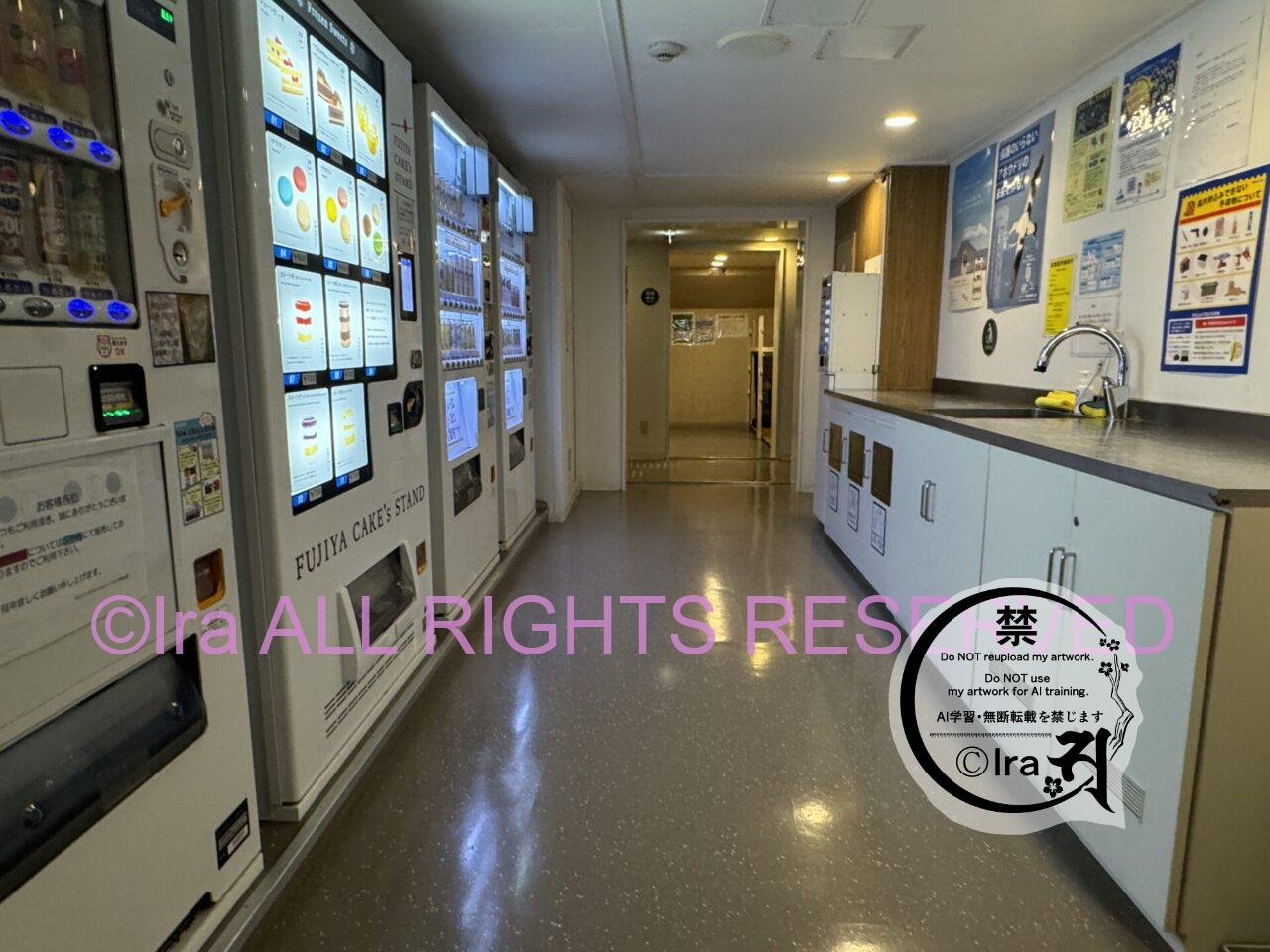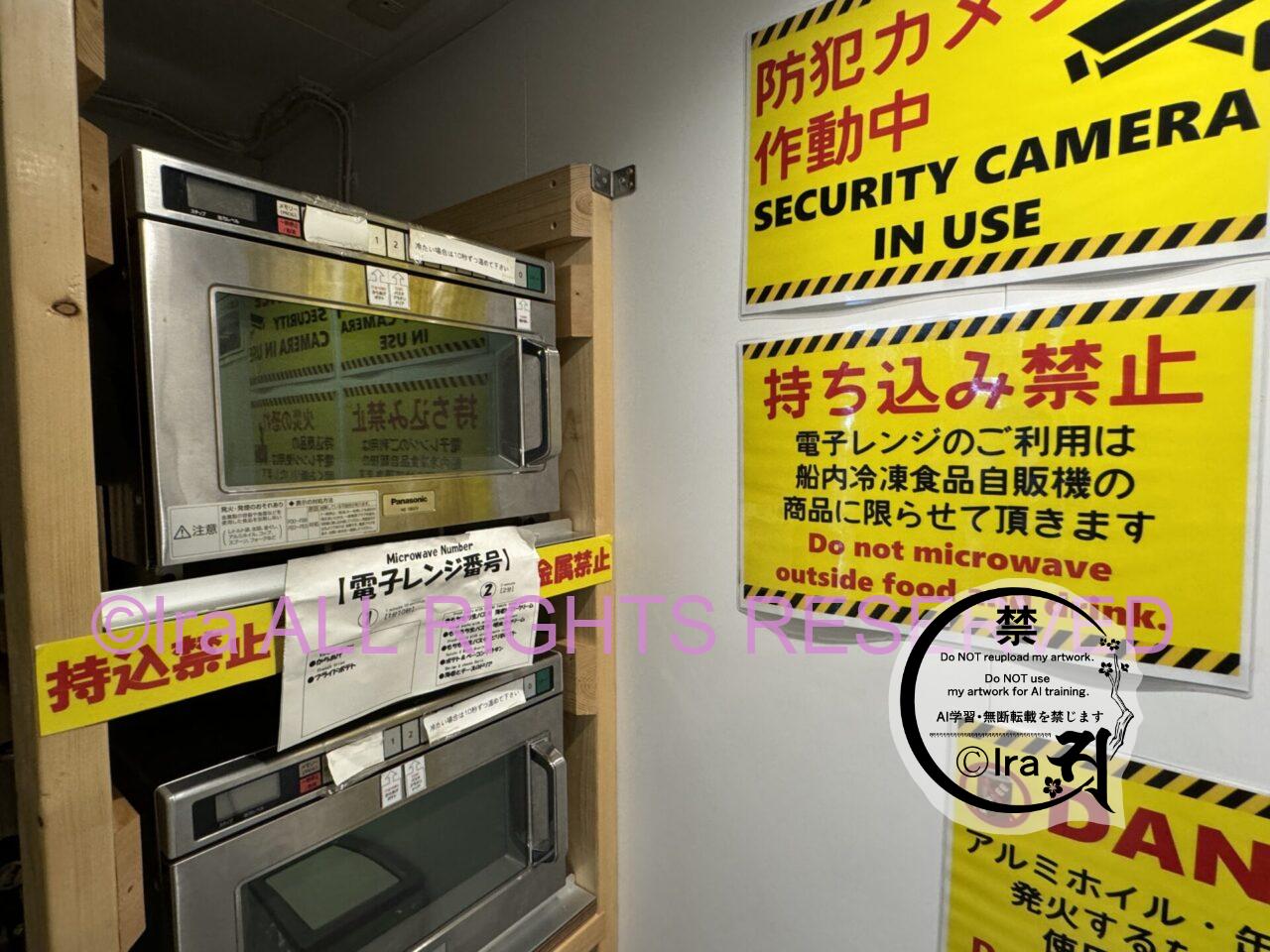 電子レンジの使用はこのフェリーにある自動販売機で購入した品のみに、利用可能。