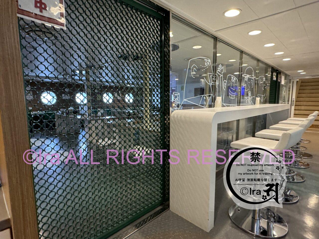 free wifiは2種類あり、一つはこのレストラン近辺と案内所でしか使用できない。もう一つのwifiはほとんど全く使えない。東京本土にいても。