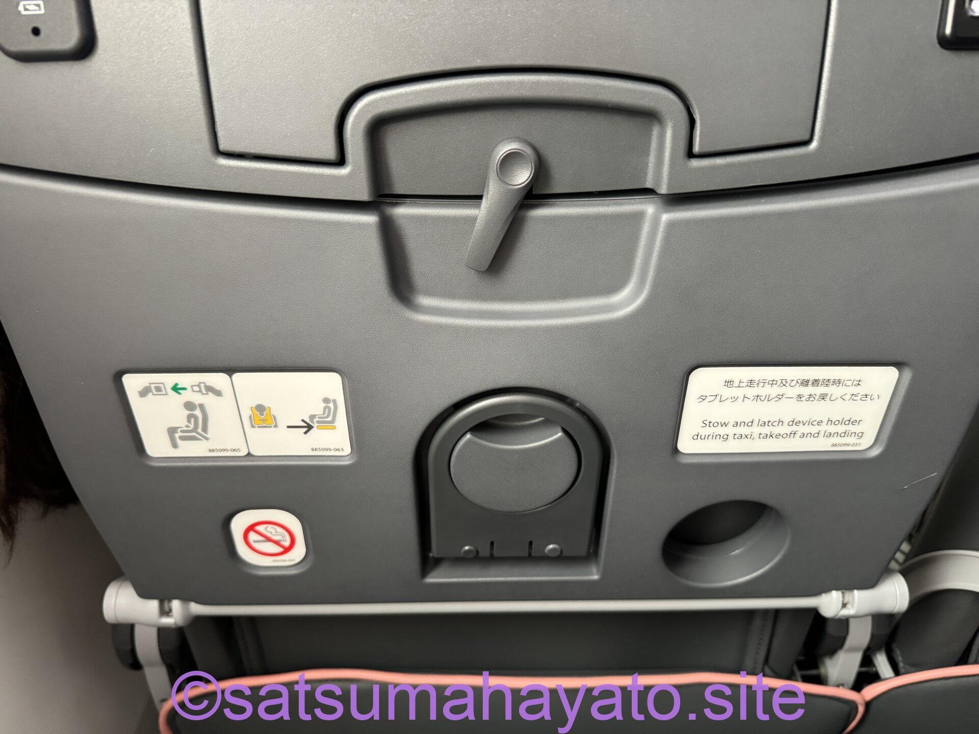 窓側席。紫外線防止のボタンがあった。離発着時は使用不可とのこと。