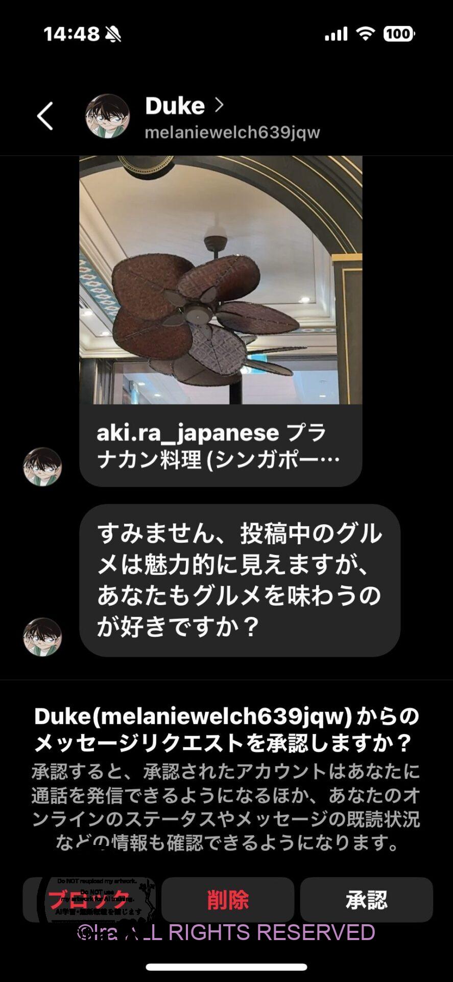 で、ロマンス詐欺している人たちですけど、インスタからのメッセージほぼ毎回同じ手口。