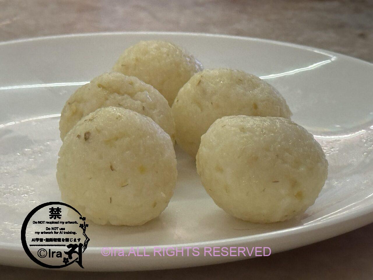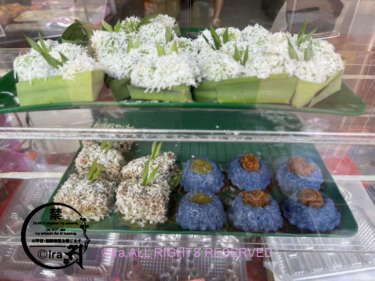 日本の”餅”と”柔らかくした羊羹”の間のような食感のマラッカの菓子。三角錐や円柱型がある。
