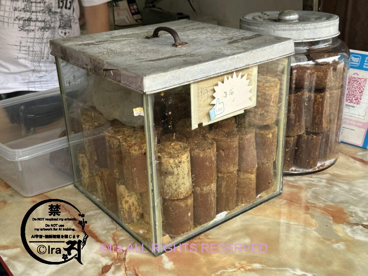 原材料はココナッツミルク、砂糖、米粉。結構あちこちで販売している。