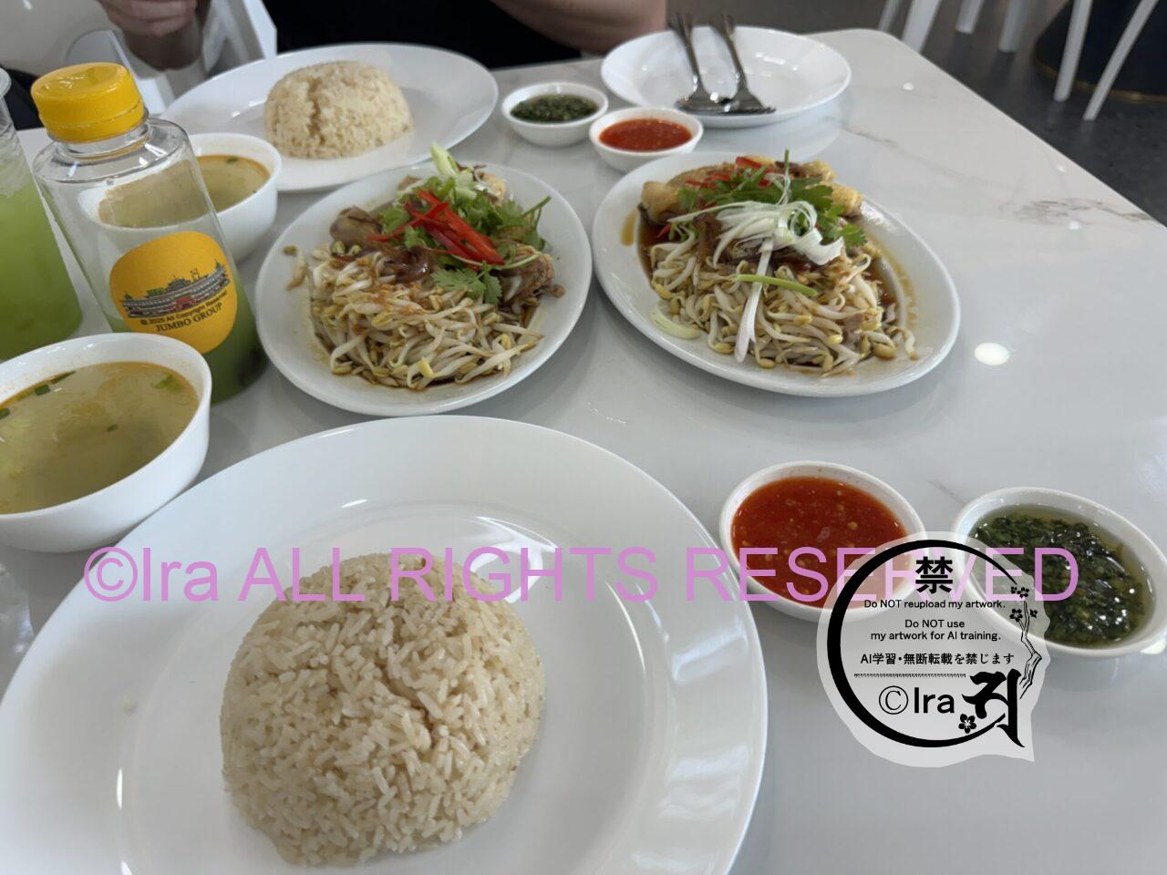 シンガポールのチキンライスと比較すると使用している具材が多いです。倍以上。