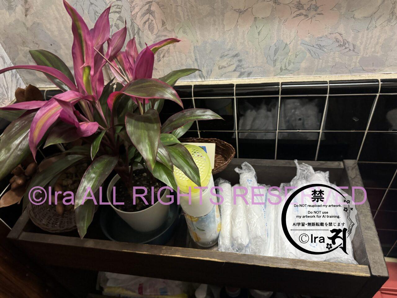 トイレの洗面所エリア。おしぼりが常時用意されていた。観葉植物は造花ではなく、本物です。維持費用かけてますね。