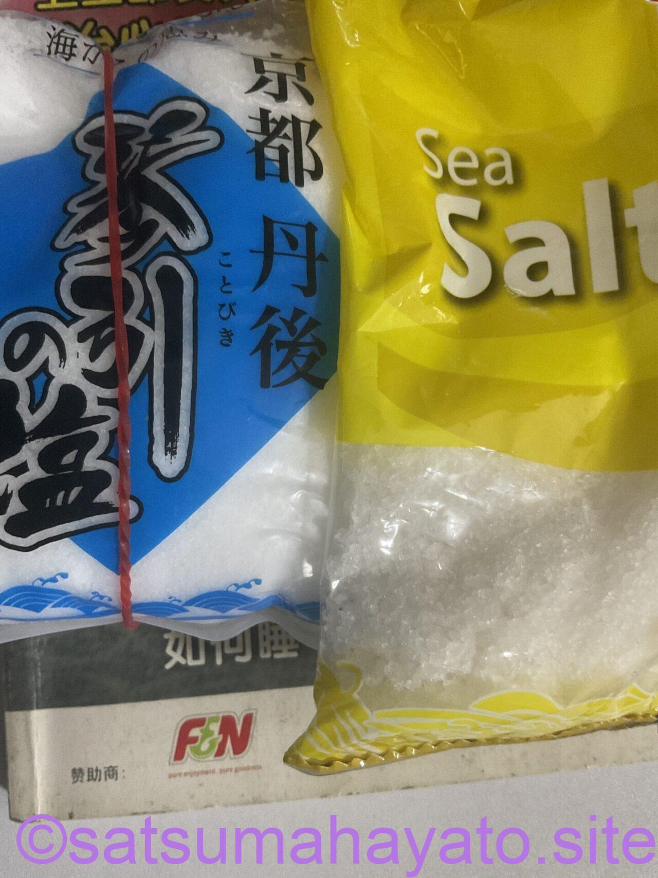 京都の天橋立の近くで製塩されている塩(琴引の塩)を親父殿にプレゼントしてきました。製法が異なるしこっちのほうが体に良いから、と説明して。親父殿は普段から産地をあまり気にしていないので、勝手に塩をすり替えようかと思いましたが、塩の色が異なっていることにきづかれました。