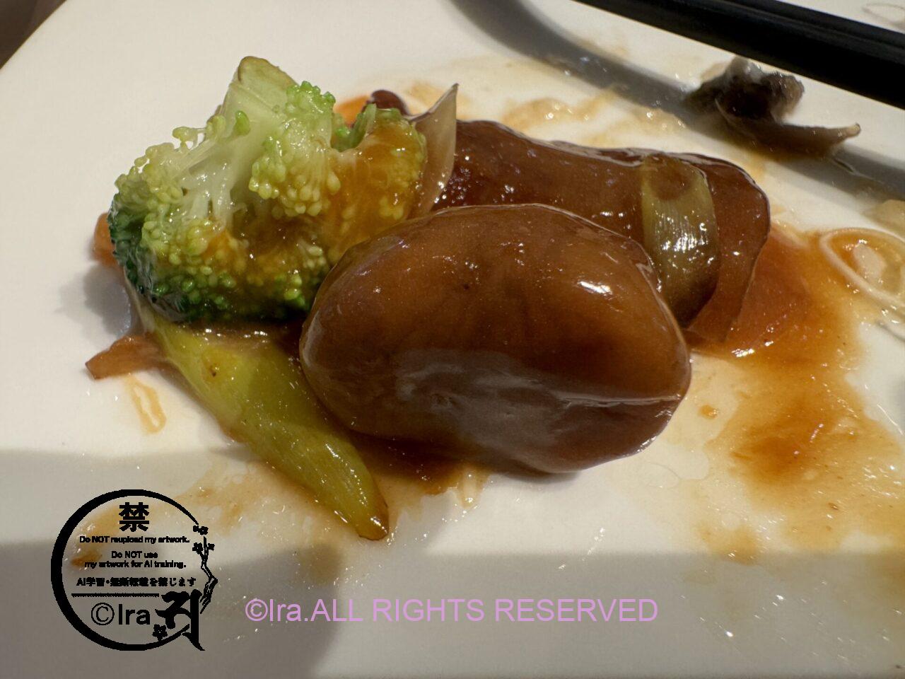 オイスターソースの中に、栗が数個入っていました。僕には違和感しかありませんがシンガポール人家族は「違和感ない」そうです。日本でこの食習慣はなさげ。