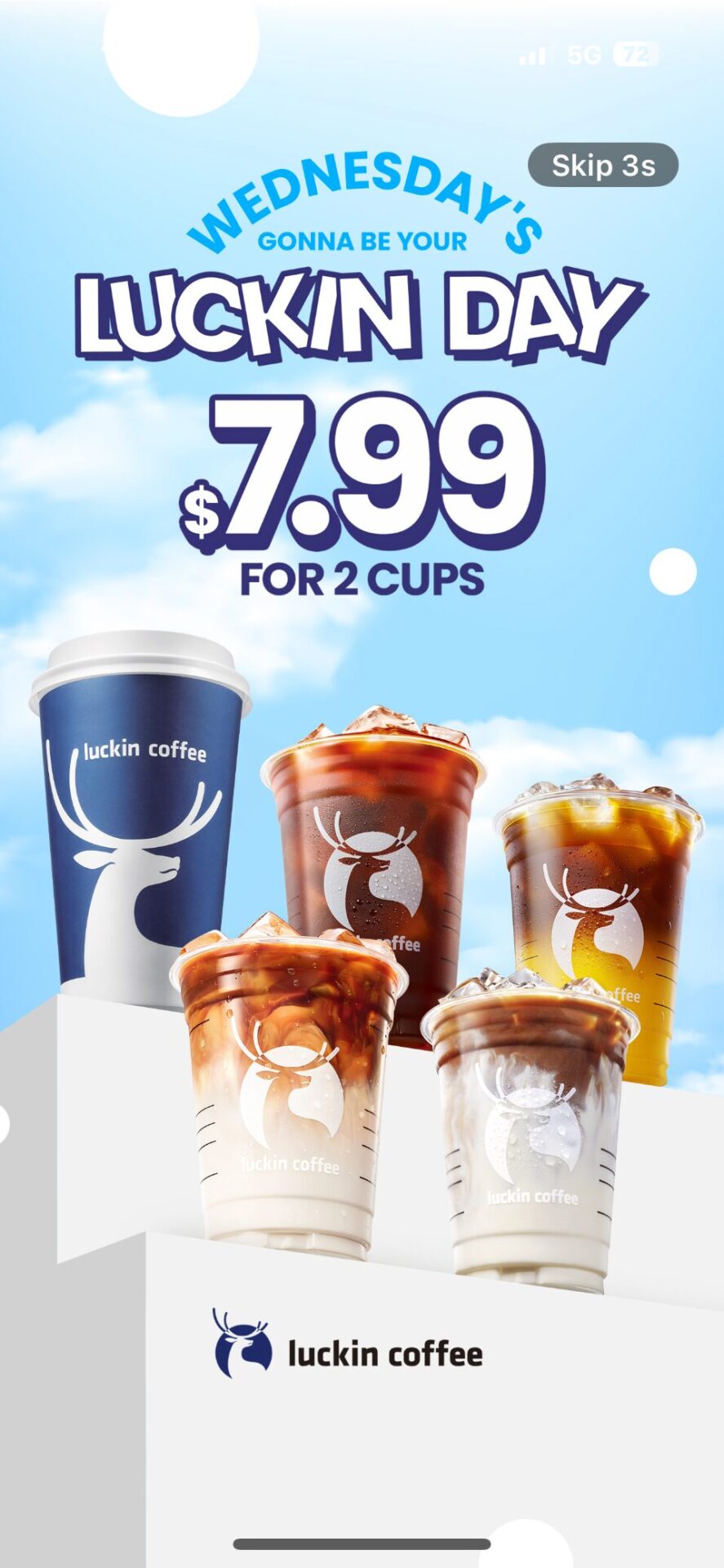 SGシスターズアイランズLuckin Coffeeはオンライン注文です。
