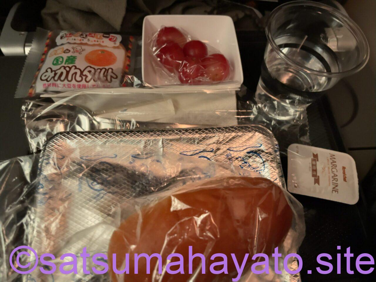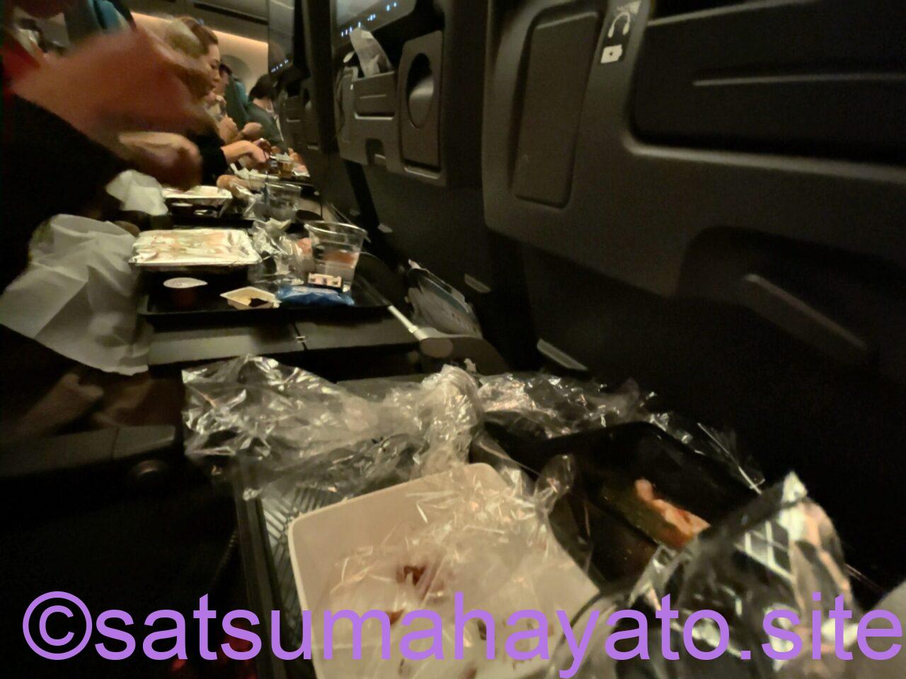 窓側席からお手洗いに行って、戻ってきてもまだ隣席には通常食が配膳されていませんでした。どんだけやねん!!!