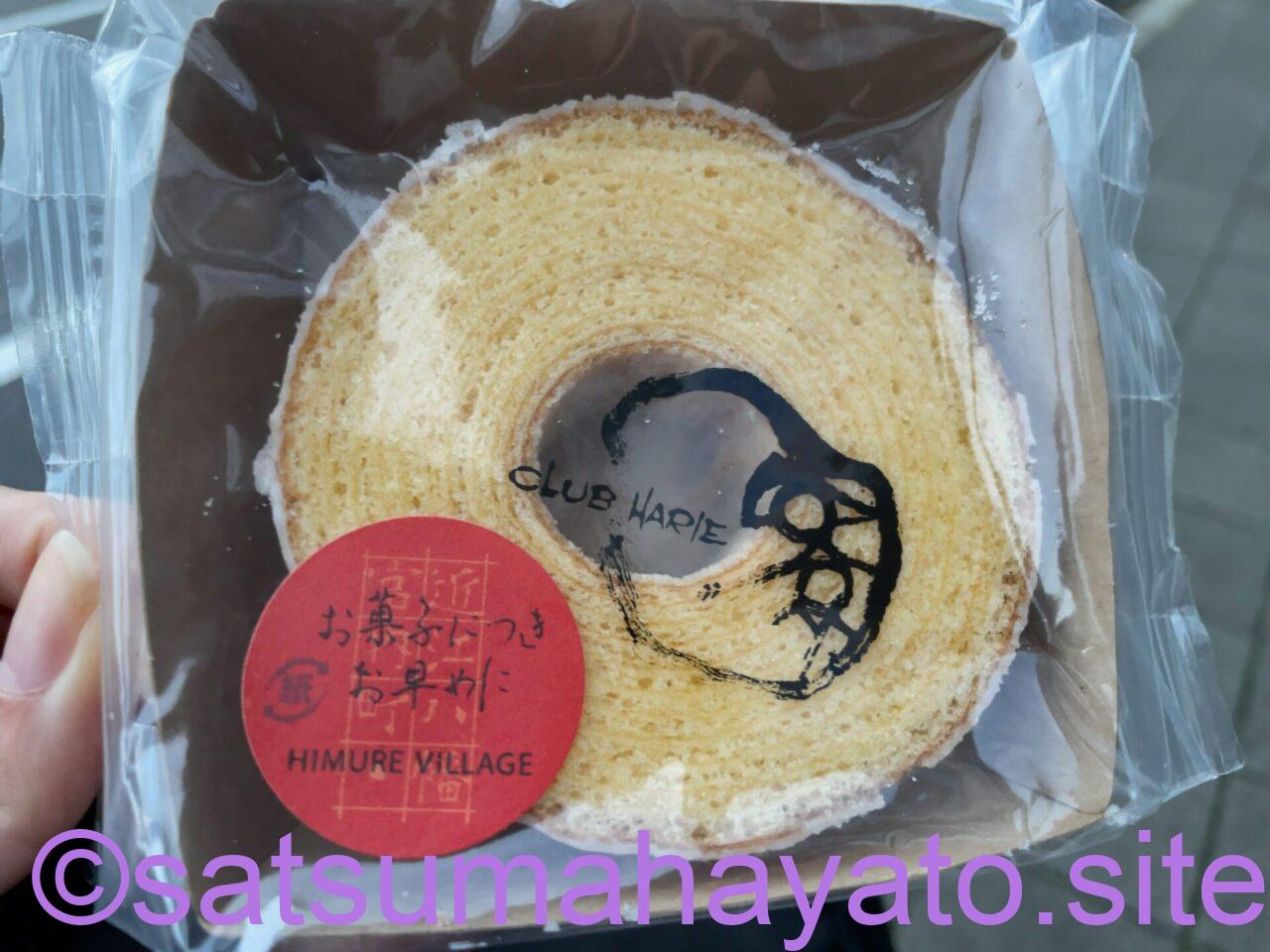 CLUB HARIE クラブハリエ バームクーヘン はビニール袋で個包装されているので、シュトレンと違って傷みにくいかと思います。箱が箱根の伝統工芸品にありそうなデザイン、というかヴィトンかなというようなそんな四角形の組み合わせブラウンの意匠の箱に入ってます。僕は小さな1個入りを近江八幡で購入し食べました。