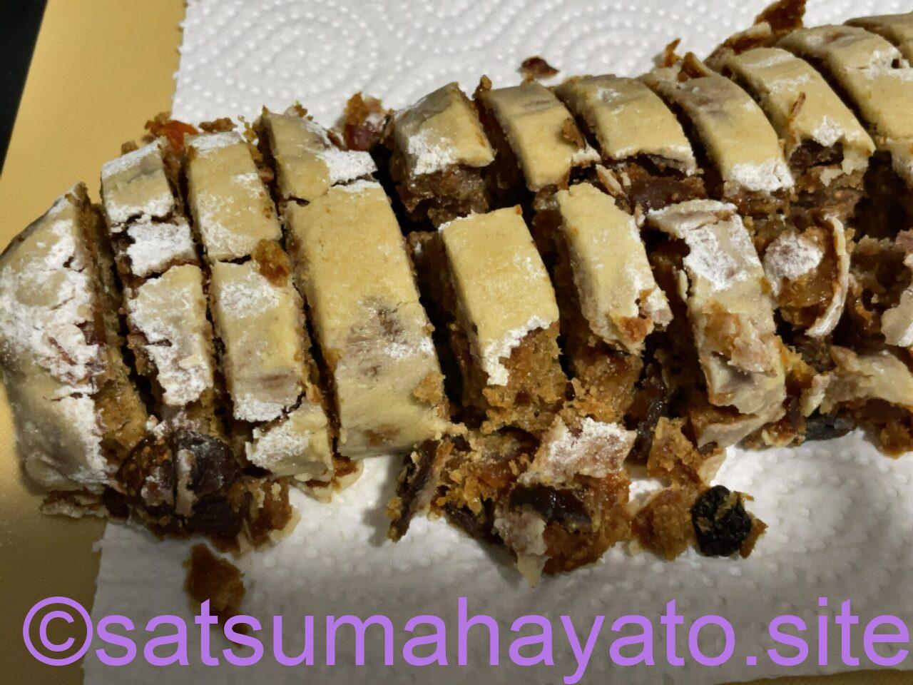 自分の毒耐性スキルのレベルとキャパがよめないので2切でやめました。水分を大量に含んだシュトレンですが、結構ボロボロ中身がこぼれ落ちます。しっとりしてない。