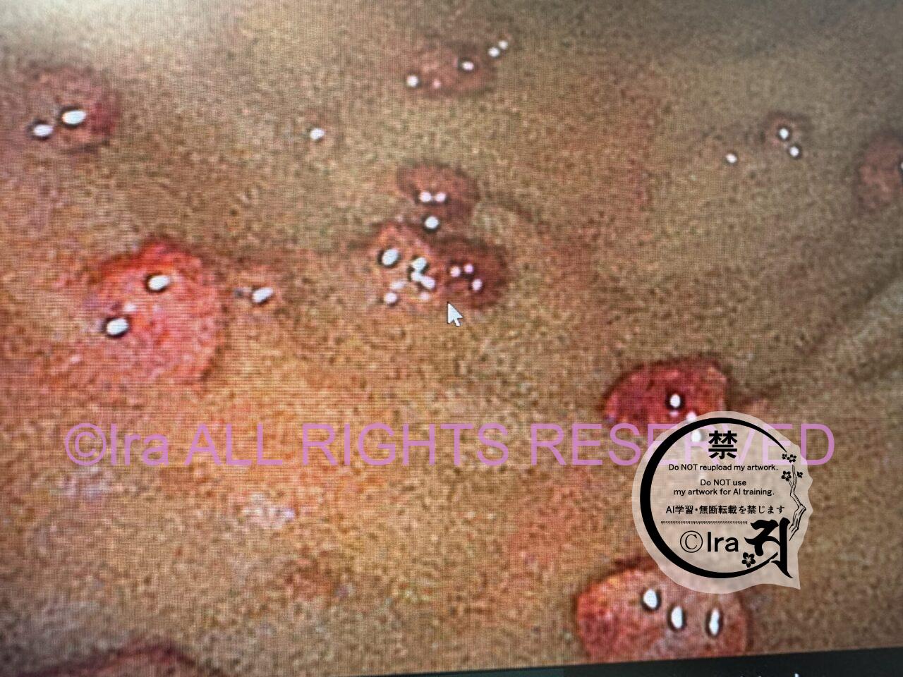 そんなIraの胃カメラ写真。ポリープは50個超え。