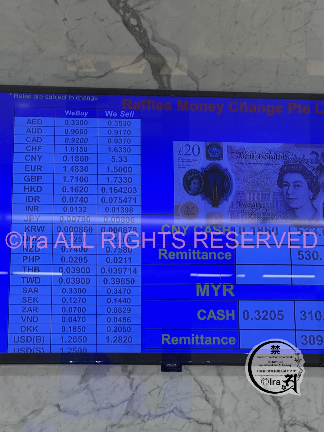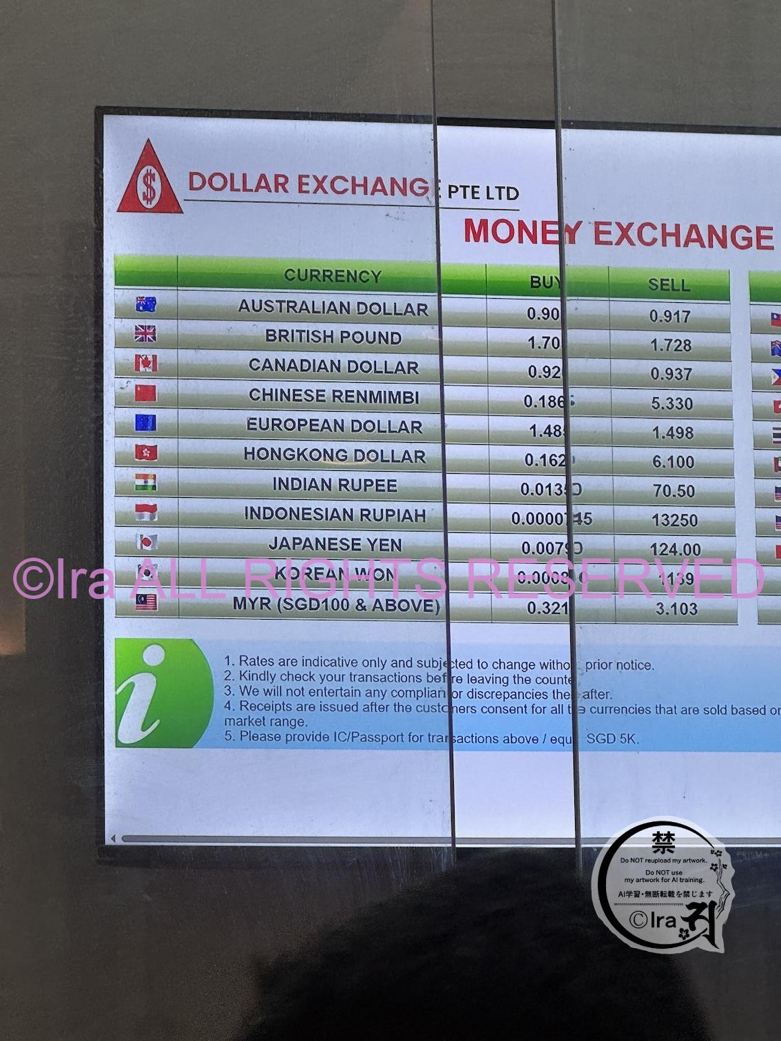 いずれも街中の両替所です。チャンギ国際空港にある両替所はレートが悪いのでこの日はそもそも行ってません。