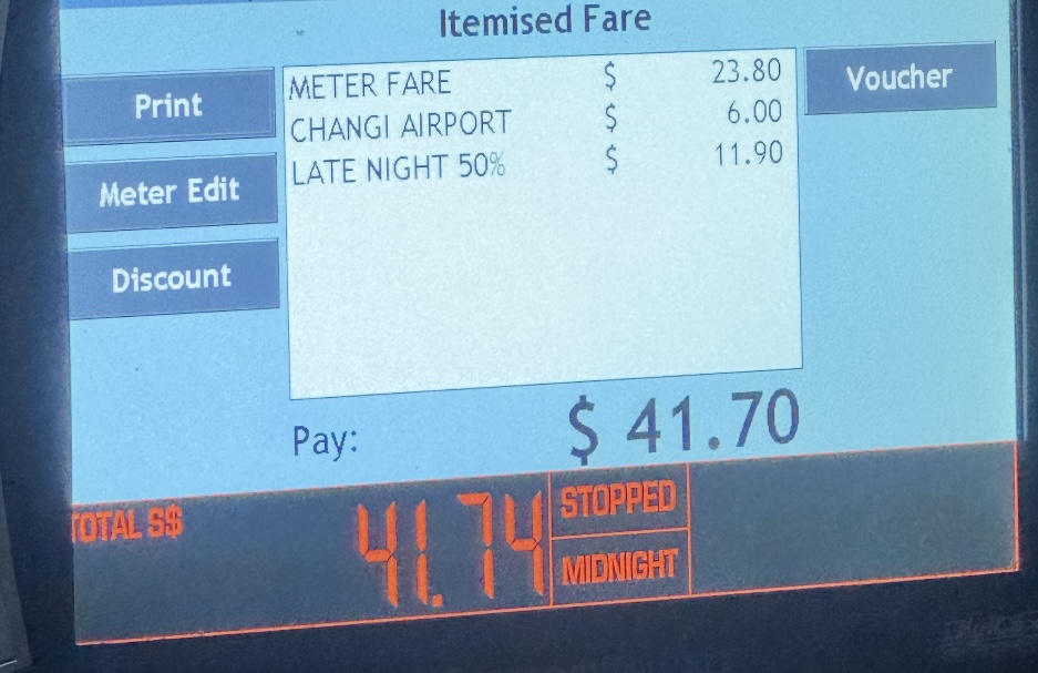 この例は、チャンギ空港を利用した&深夜料金が通常料金に加算された場合のものです。