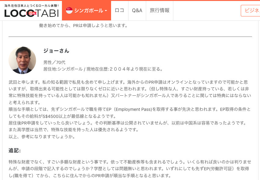 シンガポール就労経験0回の永住権者が現実にいるから。