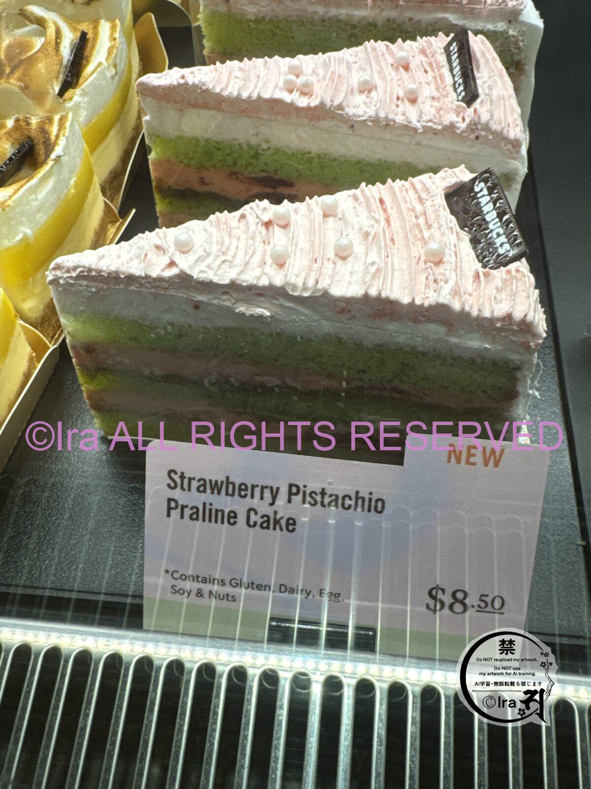 ・・Strawberry Pistachio Praline Cake *甘さ控えめ、と公式サイトで説明あり。何気に、パール乗せ。