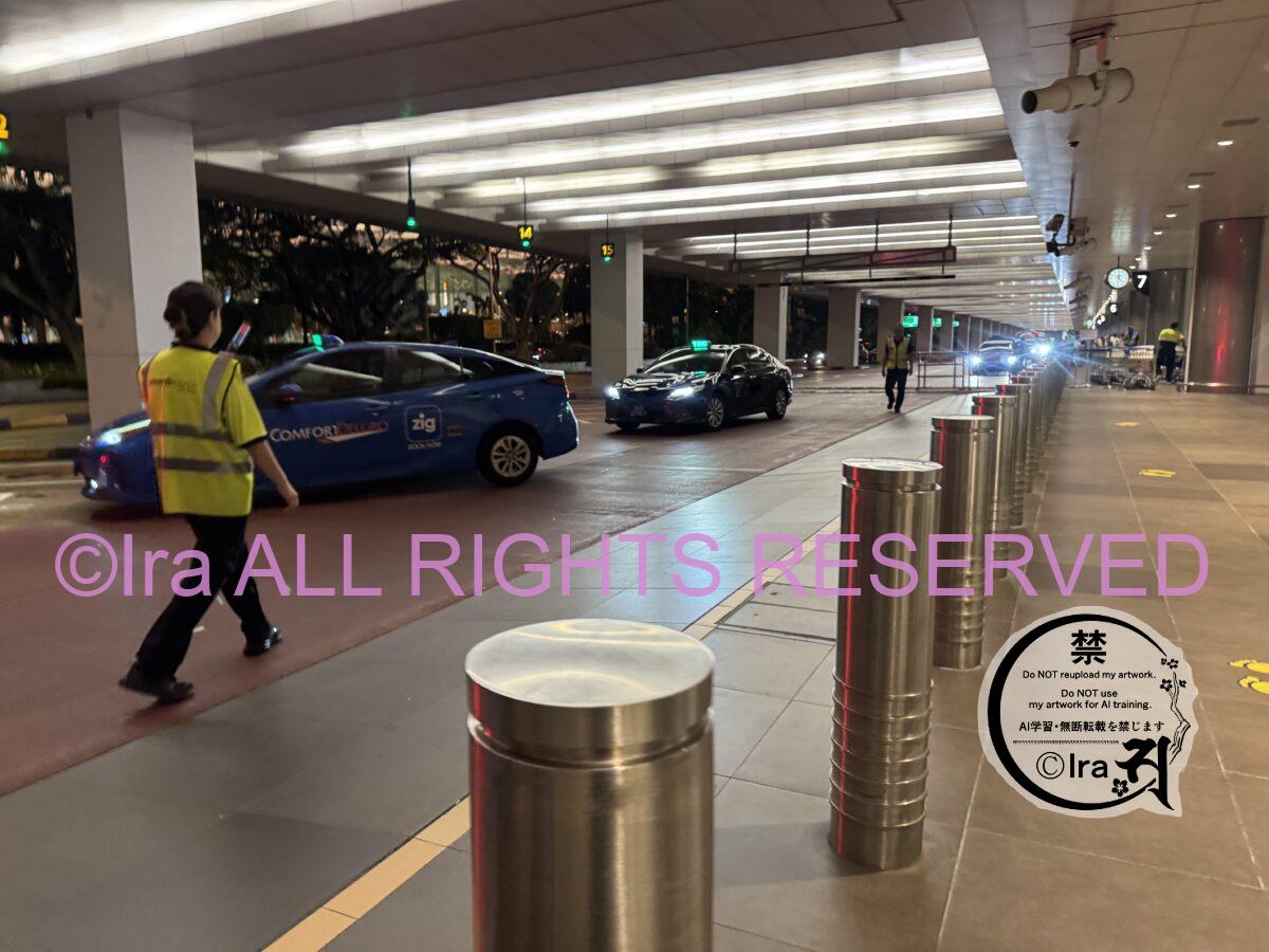 シンガポール人家族5人以上や手荷物が多い人はタクシー乗り場のスタッフが気をきかして該当車が空港に到着したら再度声をかけてくれます。上記写真のように並んで待っている感じです。