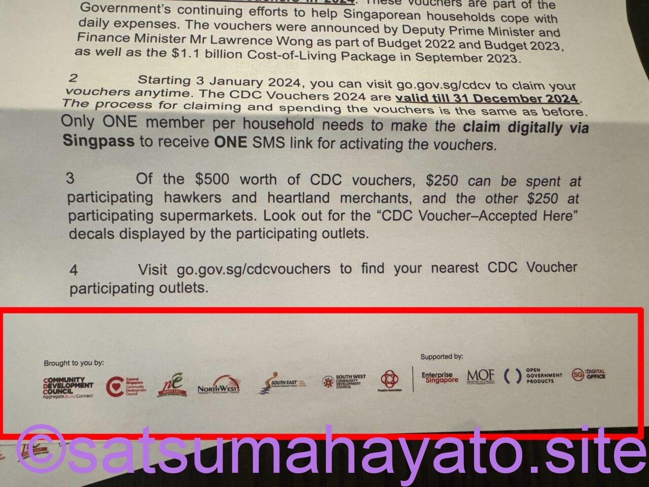 内訳:250 $はホーカーズ。250$はスーパーマーケットで使用可