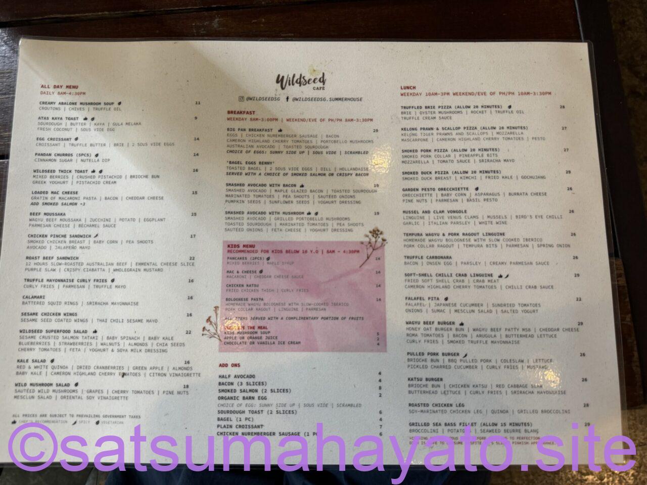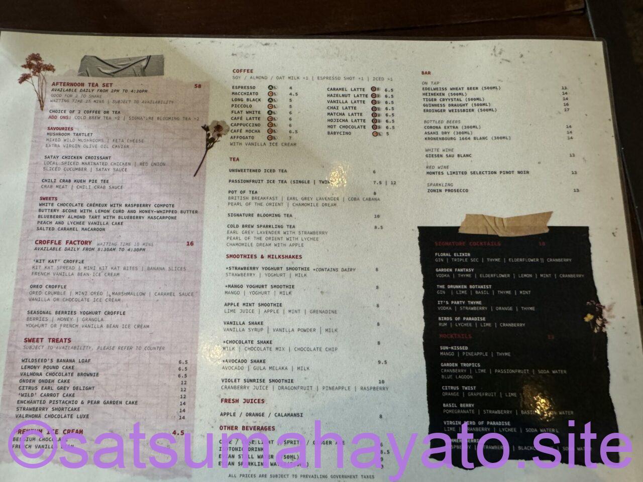 cafeのメニュー表(ズームしてください)