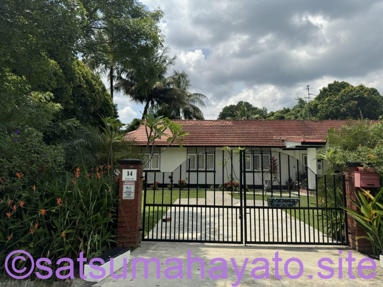 今までシンガポール各地のレトロ戸建てエリアを巡りましたが、ここはトップクラス級の広さです。イギリス軍占領時代の名残とのこと。庭の芝生がきちんと維持管理されていてすごい。